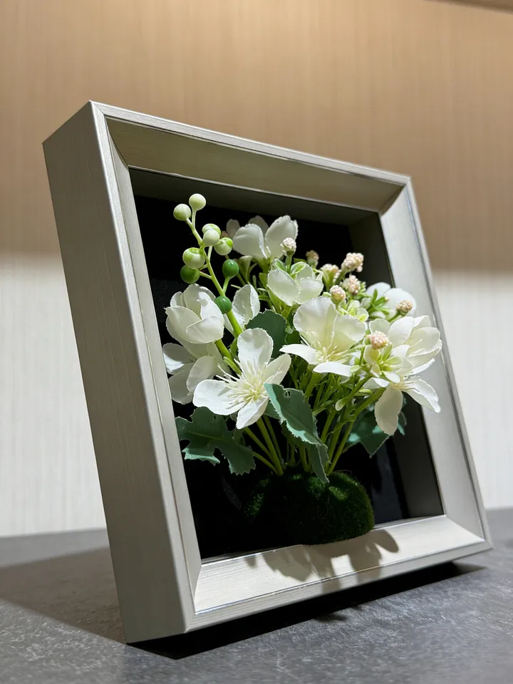 Artificial White Jasmine Framed Floral Art | Realistic Faux Jasmine Shadow Box Décor, 7.8*7.8 in